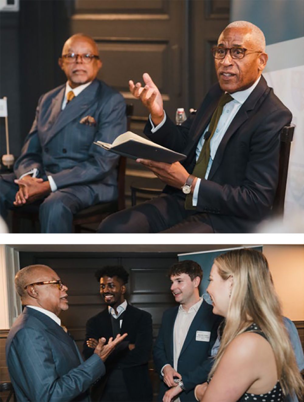 On September 13, 2024 in Boston, CAm had the honor to host an evening with more than sixty alumni and friends for a conversation with CAm Board member and Harvard Professor Henry Louis (Skip) Gates, Jr., (Clare 1973) and Homerton College Principal Lord Simon Woolley. The two esteemed thought leaders sat with Harvard Professor Peter Galison (Churchill 1977) to exchange stories and reflections about their respective journeys to Cambridge, their careers, and what lies ahead for issues of race and identity on each side of the Atlantic.
