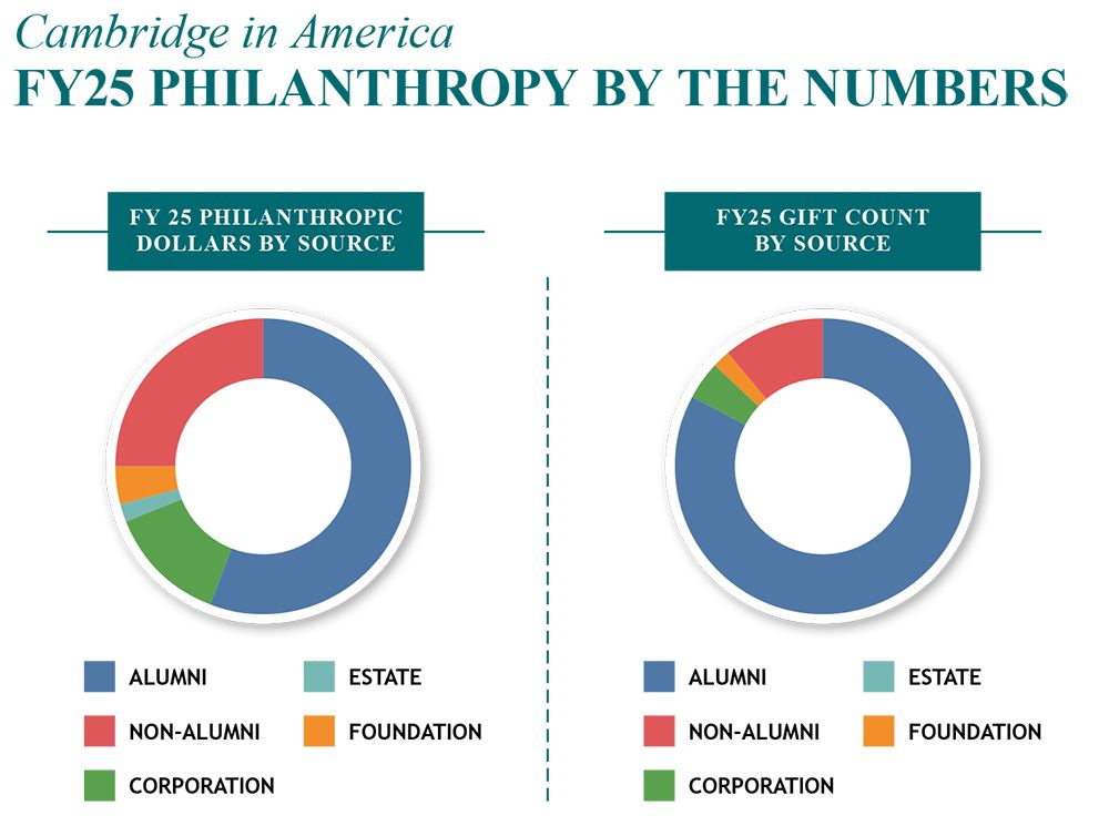 The breakdown of contributions by North American alumni and friends in support of Collegiate Cambridge this fiscal year speaks to an impressive mix that balances major gifts with grassroots engagement.